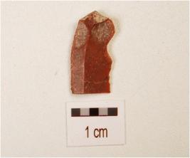 | Description / विवरण | A blade, made on chert with prominent mid-ridge on dorsal side, prepared platform, bulb on ventral, use-wear marks on cutting edge and triangular in section, broken along distal end. |
