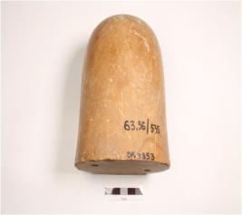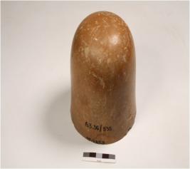 | Description / विवरण | Unidentified Object with smooth and polished surface, scaratch marks on surface, brown in colour, circular top and base and two holes at the base. |