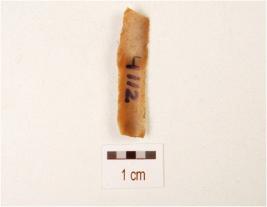 | Description / विवरण | Fragment of a chert blade with prominent mid-ridge on dorsal side, use-wear marks on cutting edge and tirangular in section. |