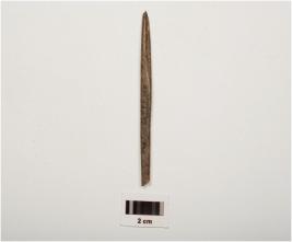 | Description / विवरण | A bone point with polished surface, borken at both pointed ends and rectangular cross section. |
