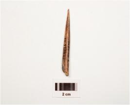 | Description / विवरण | A bone point with polished surface, pointed one end and semicircular cross section. |