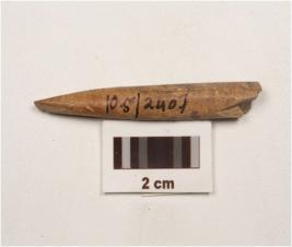 | Description / विवरण | Bone point, pointed one end but slightly broken other end, smooth and polished surface. |