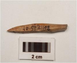 | Description / विवरण | Bone point, one end is pointed and other end broken, smooth and polished surface. |