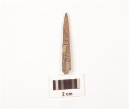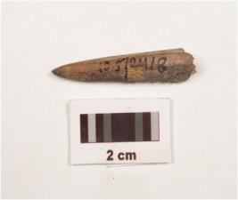 | Description / विवरण | Bone point, pointed one end other is broken slightly chipped off from surface and polished surface. |