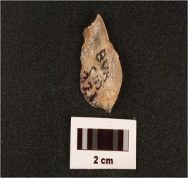 | Description / विवरण | A quartz scraper with use wear marks along cutting edges, flake scars on dorsal surface, polsitive bulb on ventral surface. |