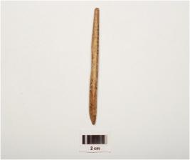 | Description / विवरण | Bone point with polished surface, broken at both pointed ends and semicircular cross section. |
