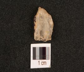 | Description / विवरण | A quartz scraper with use wear marks along cutting edges, prominent bulb on ventral surface, flake scars on dorsal surface. |