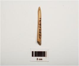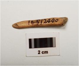 | Description / विवरण | Bone point with polished surface, slightly broken at pointed end and rectangular cross section. |