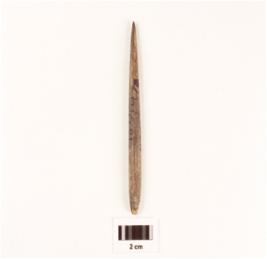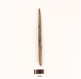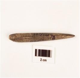 | Description / विवरण | Stone point, one end is slightly broken, pointed one end, polished surface and circular section. |