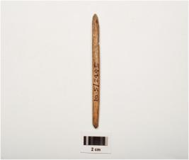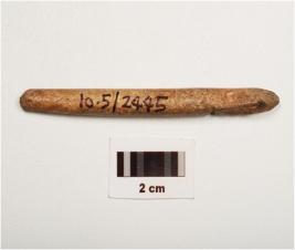 | Description / विवरण | Bone point with polished surface blunted at one end and circular cross section. |