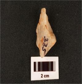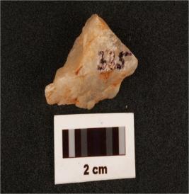 | Description / विवरण | A quartz flake, use wear marks on cutting edges, flake scars on one side. |