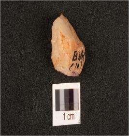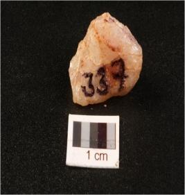 | Description / विवरण | A quartz flake with flake scars on surface. |