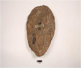 | Description / विवरण | Hand axe made on quartzite pebble, sharp cutting edges and prepared by employing block on block technique. |