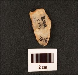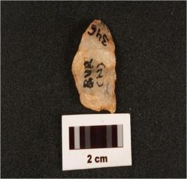 | Description / विवरण | A quartz side scraper with use wear marks on cutting edges, prominent bulb on one side, prepared platform. |