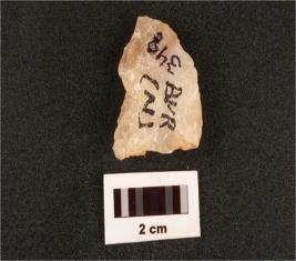 | Description / विवरण | A quartz side scraper made on side struck flake, use wear marks on cutting edges, distal end pointed, flake scars on dorsal surface and cortex also visible. |