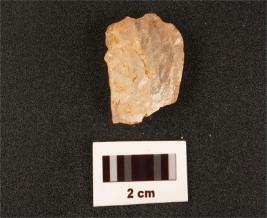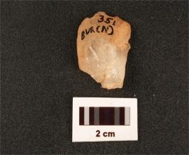 | Description / विवरण | A quartz scraper cortex visible on dorsal surface, use wear marks on cutting edges, flake scars on dorsal surface. |