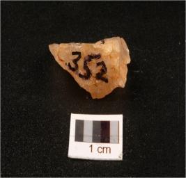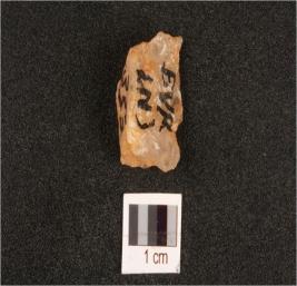 | Description / विवरण | A quartz flake with flake scars on one side. |
