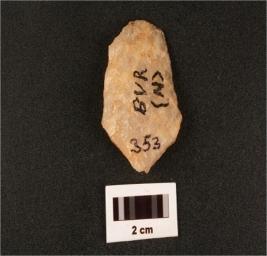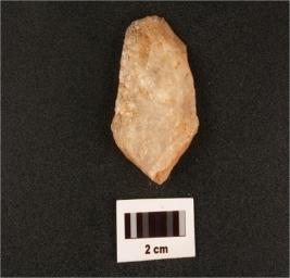 | Description / विवरण | A quartz side scraper with use wear marks on cutting edges, positive bulb on ventral side, one flake scars on dorsal surface. |