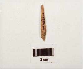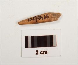 | Description / विवरण | Fragment of bone a point, polished surface with a pointed end, other end is broken, light brown in colour and circular in section. |