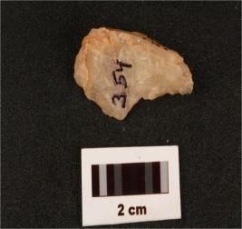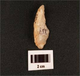 | Description / विवरण | A quartz flake with flake scars on one side. |