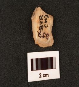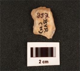 | Description / विवरण | A quartz core with two blade scars, flake scars on one surface. |