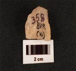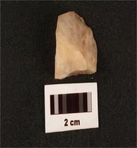 | Description / विवरण | A quartz flake with flake scars on surface, use wear marks on cutting edges. |