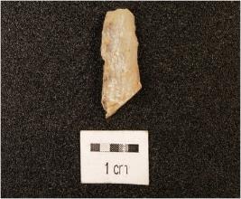| Description / विवरण | A parallel sided blade made on quartzite, ridge on dorsal surface, use wear edges, broken ends. |