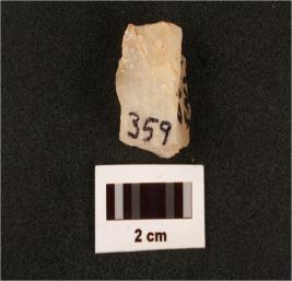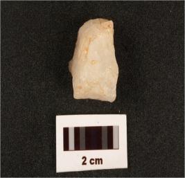| Description / विवरण | A quartz flake with four blade scars on surface, prepared platform. |