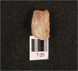 | Description / विवरण | A quartz core with four blade scars on surface, prepared platform. |
