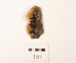 | Description / विवरण | A parallel sided blade made on chert, use wear edges, side struck, thin in character. |