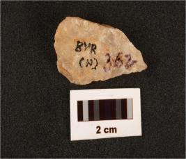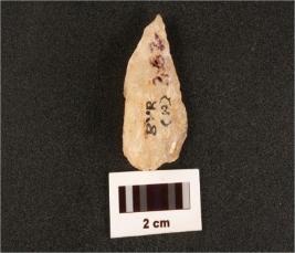 | Description / विवरण | Quartz flake, with pointed end, a ridge on surface. |