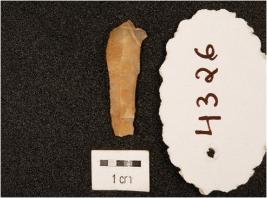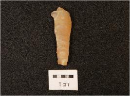 | Description / विवरण | A blade made on chalcedony stone, translucent surface, use wear edges. |