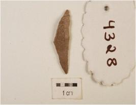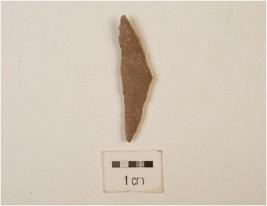 | Description / विवरण | A blade made on chert stone, pointed tip at both ends, use wear edges, double ridged at dorsal surface. |