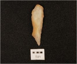 | Description / विवरण | A blade made on quartzite stone, pointed tip, use wear edges. |