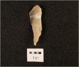 | Description / विवरण | A knife shaped chalcedony blade with use wear edges, single ridged, pointed tip. |