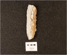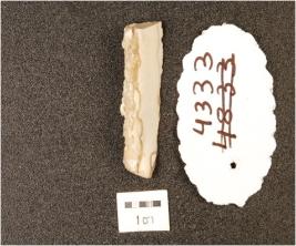 | Description / विवरण | A triangular shaped flake made on agate, rough surface, irregular edges, flake scars visible on the surface. |