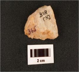 | Description / विवरण | Quartz scraper, broad working edge, cortex visible on surface. |