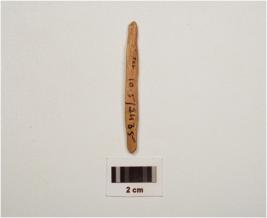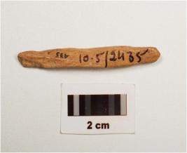 | Description / विवरण | Fragment of a bone awl , polished surface with one pointed end, light brown in colour and rectangular in section. |