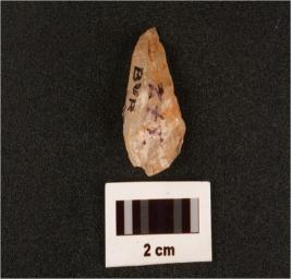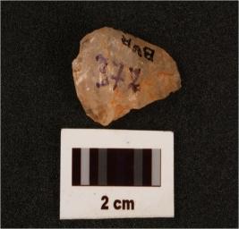| Description / विवरण | Quartz flake, with a pointed end, irregular flaking on surface. |