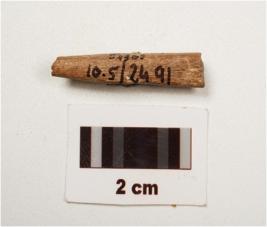 | Description / विवरण | Fragment of bone point , smooth surface , both ends are broken light brown in colour and circular in section. |