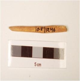 | Description / विवरण | Fragment of bone point, broken from both ends, round and smooth surface, polished, brown in colour. |