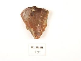 | Description / विवरण | A chert end scraper made on side struck flake, irregular cutting edges, flake scars visible on the surface. |