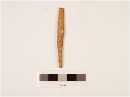 | Description / विवरण | Fragment of bone point, uneven in shape, slightly uneven ends and rough surface. |