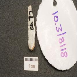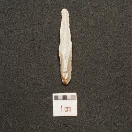 | Description / विवरण | A parallel sided blade made on chert, end struck flake, diffused bulb on ventral surface, sharp cutting edges, use wear marks on cutting edges and triangular in section. |