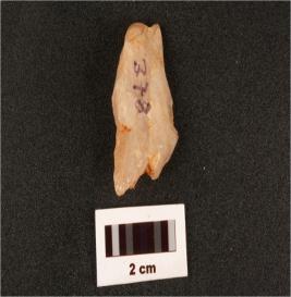 | Description / विवरण | Quartz flake, with irregular shape, one end pointed, uneven surface. |