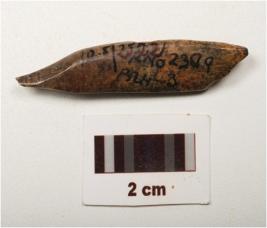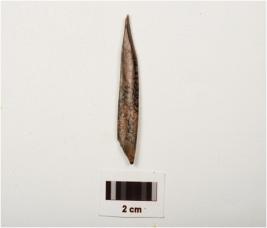 | Description / विवरण | Fragment of an bone awl with polished surface and one pointed end, partly broken from both ends, gray in colour and rectangular in section. |