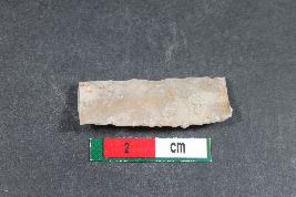 | Description / विवरण | Fragment of parallel sided blade with one dorsal ridge having smooth surface. |