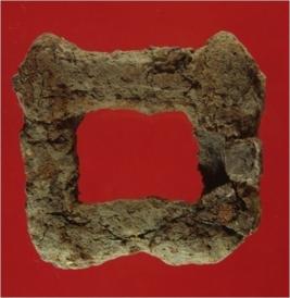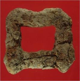 | Description / विवरण | Trench XF 2, Qdt 2, layer 5, depth 270 cm It is a rectangle made of iron. It seems as it was used to hold or fast something. In its structure three are the arms and one is the pin. |