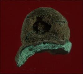| Description / विवरण | Trench XAX 9, Qdt 2, layer 2, depth 110-160 cm It is a broken bell made of copper. Only the loop is left and part below it is gone completely. |