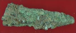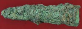 | Description / विवरण | It is a broken nail made of copper. It is tapering toward one end making a tip. Surface is rough and deposition of hard patina. |